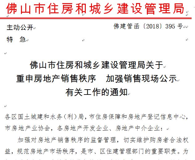 比如5月7日,佛山公布了《关于重申房地产销售秩序加强销售现场公示有关工作》的特急通知,重申加强对房地产销售秩序的监督管理,切实维护购房者合法权益。
