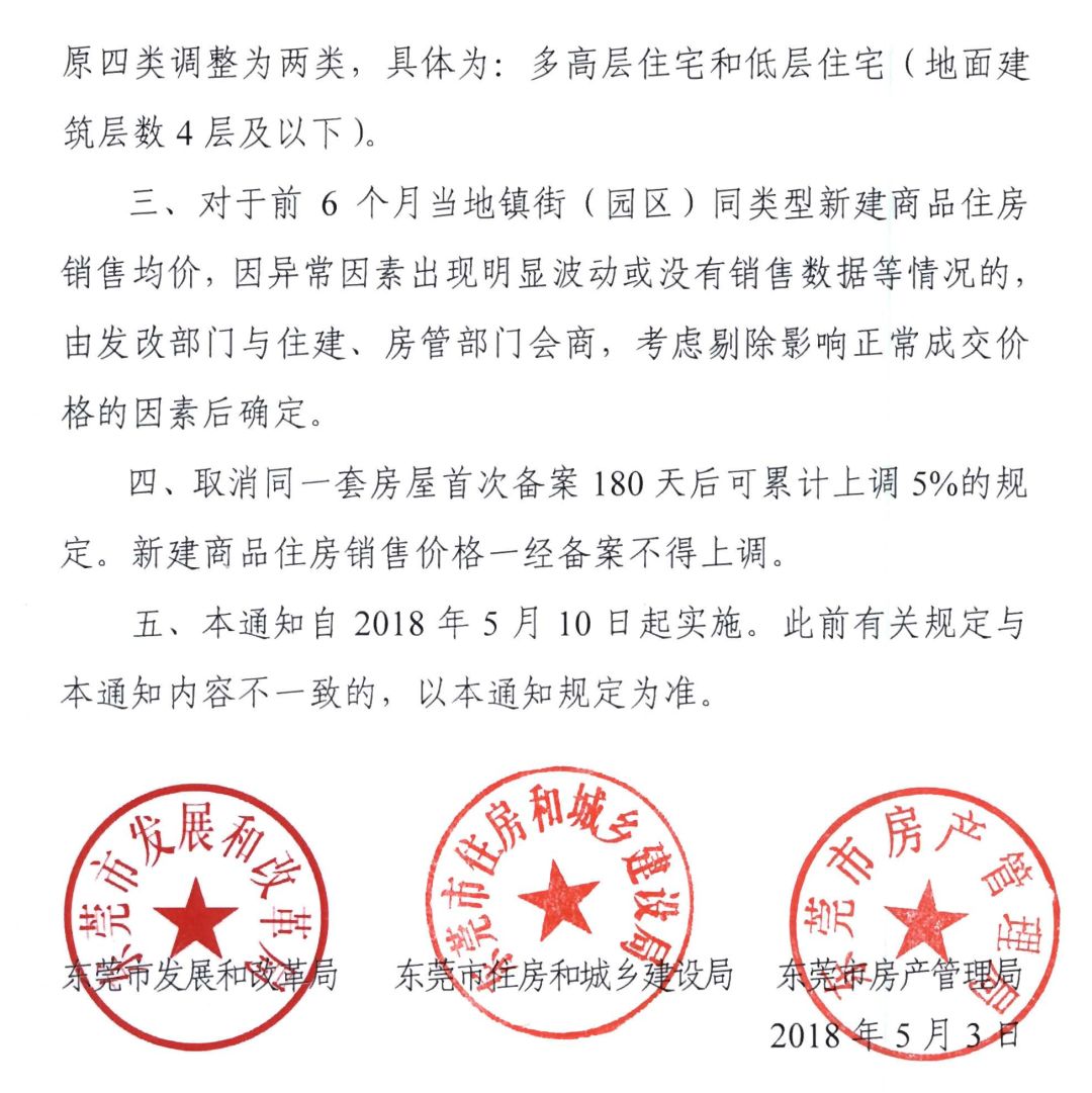 5月8日,东莞的新一轮调控政策正式公布,文件的名称是《关于进一步加强和完善新建商品住房销售价格备案管理的通知》,签发时间是5月3日。